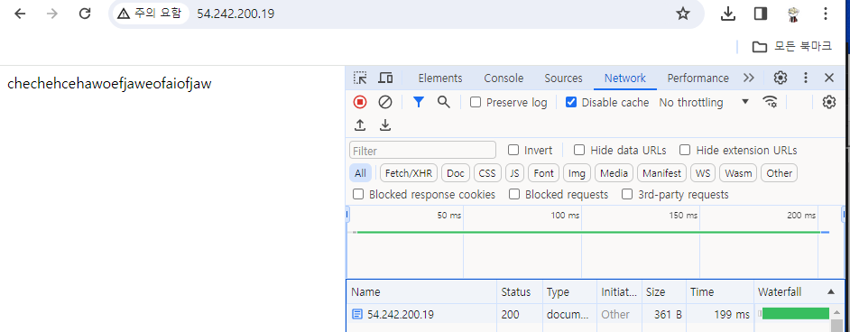 ○ f12 >> network [ Disable cache 체크 ] >> 시간 199ms