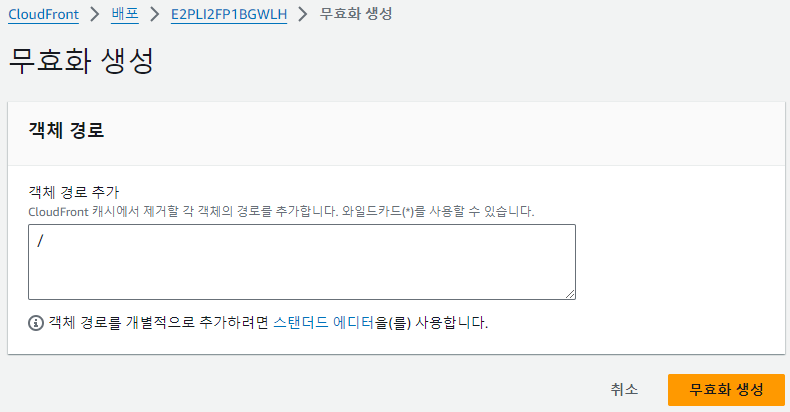 ○ 무효화를 생성해야 하는데, 객체 경로를 그냥 / ( root ) 로 설정해도 된다