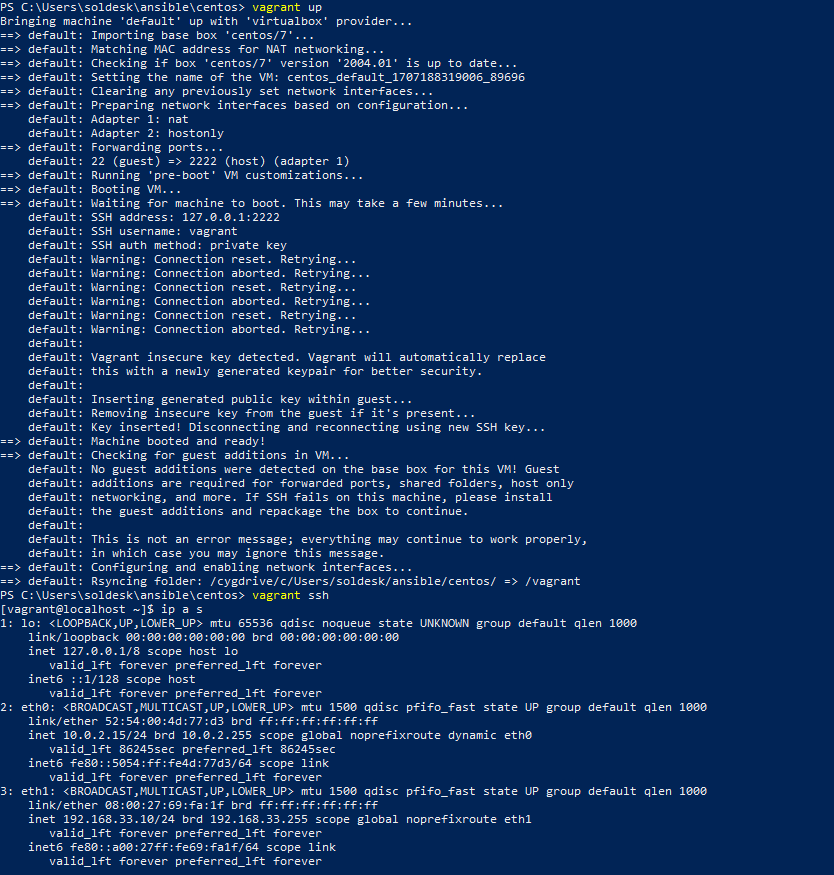 vagrant ssh >>> 공개키 인증 방식 ( 첫번째 NIC )