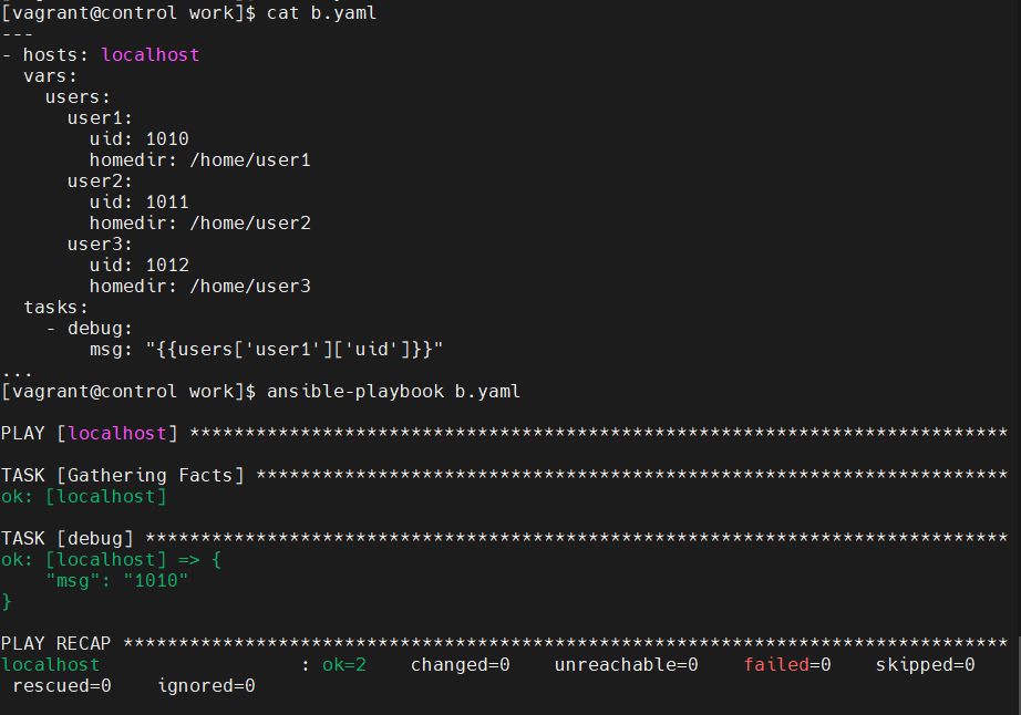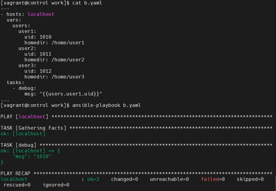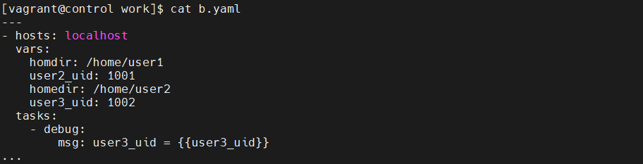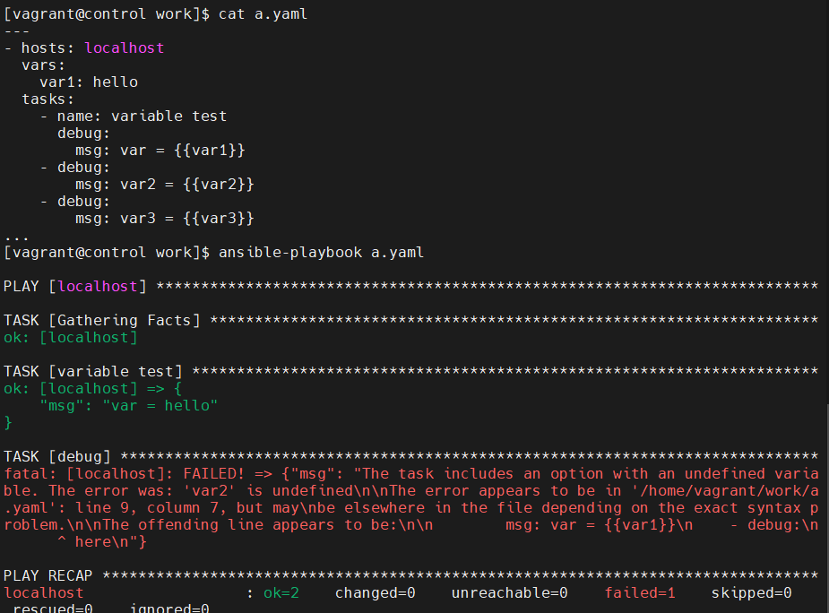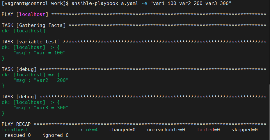 [vagrant@control work]$ ansible-playbook a.yaml -e "var1=100 var2=200 var3=300"