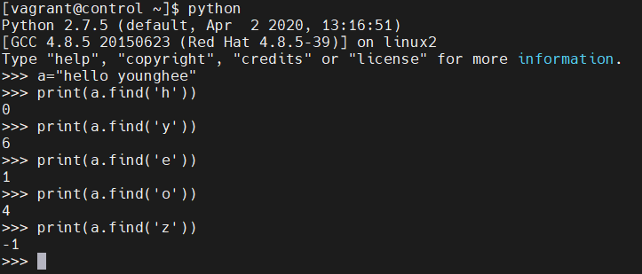 >> find() 함수는 글자 위치를 출력해준다