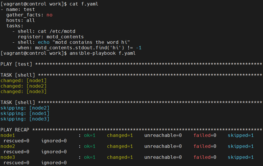 - shell: echo "motd contains the word hi"