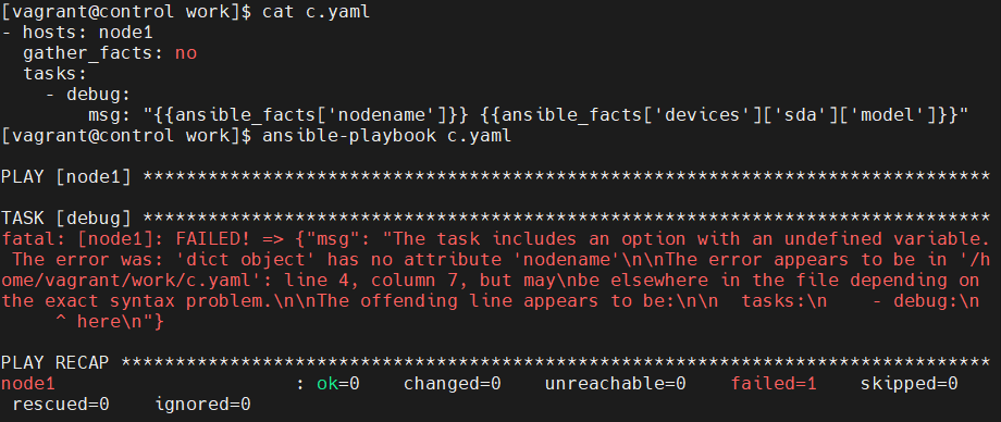 [vagrant@control work]$ ansible -m setup node1
