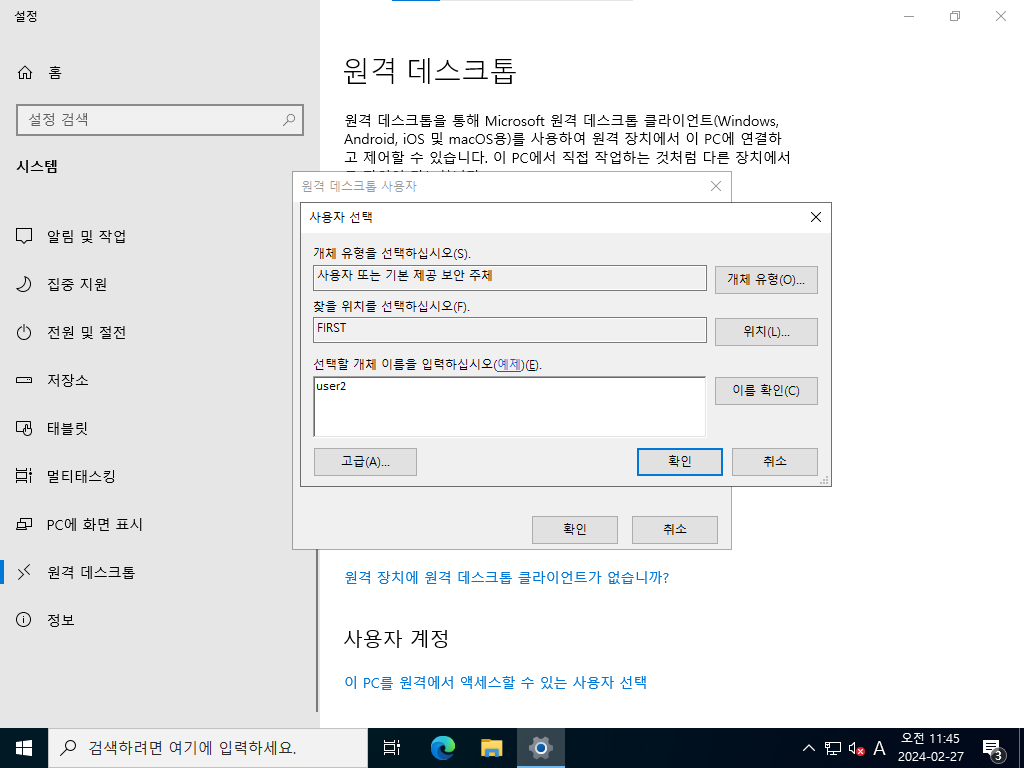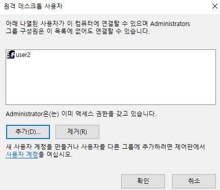 ▷ user2 접속하고, Winclient로 Remote 접속 [ IP 로 연결해서 user2로 원격접속 ]